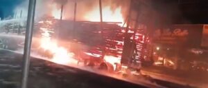 Caminhão carregado de eucalipto pega fogo e mobiliza bombeiros em Água Clara