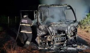 Ônibus escolar pega fogo e crianças são restirada às pressas, em Nova Andradina