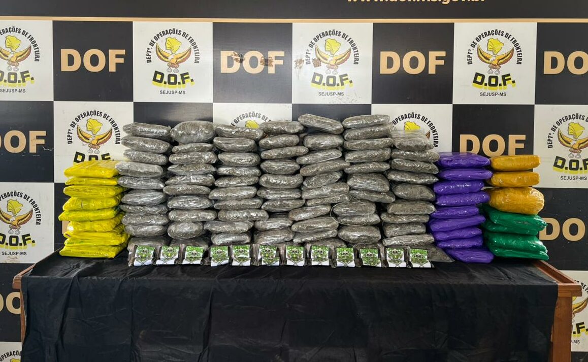 Skunk e haxixe estavam escondidos em veículo que saiu de Amambai e seguiria para Curitiba Um homem de 42 anos e duas mulheres de 37 e 49 anos foram presos em flagrante nesta terça-feira (30) em Laguna Carapã, após a apreensão de quase 60 quilos de drogas em um veículo Santana Quantum. O carro foi abordado na MS-379, nas proximidades do trevo da Ponta Caí, durante patrulhamento do Departamento de Operações de Fronteira (DOF). De acordo com a ocorrência, os