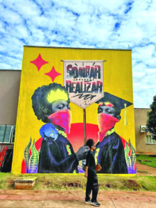 A estreia do projeto traz dois nomes fortes da cena local da arte urbana. Segundo Torraca, a escolha foi pensada devido à contribuição que ambos têm para a arte em Campo Grande, “cada um com temáticas diferentes, próprias e singulares”, explicou. “O Leonardo com pesquisa aprofundada nas questões étnico-raciais e na crítica social, misturando técnicas como o lambe-lambe e o stencil. O Caio que dialoga com a representação dos povos originários e traz nosso regionalismo tão bem executado em sua arte, além de ser um grande parceiro da Casa de Cultura que possui 2 grandes painéis de sua autoria”.