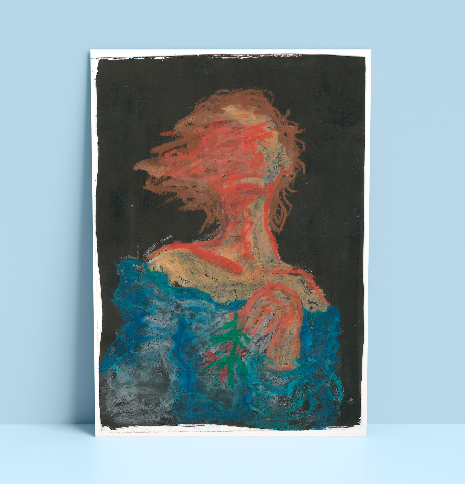 “Minha arte busca experimentar texturas, tanto no digital quanto no tradicional. Exploro diferentes suportes, papéis, madeira e tela, utilizando materiais diversos, desde giz pastel oleoso até tinta acrílica e marcadores. A paleta de cores reflete meu gosto por combinar tons frios e quentes, criando um caos harmonioso que provoca sentimentos e reflexões.”