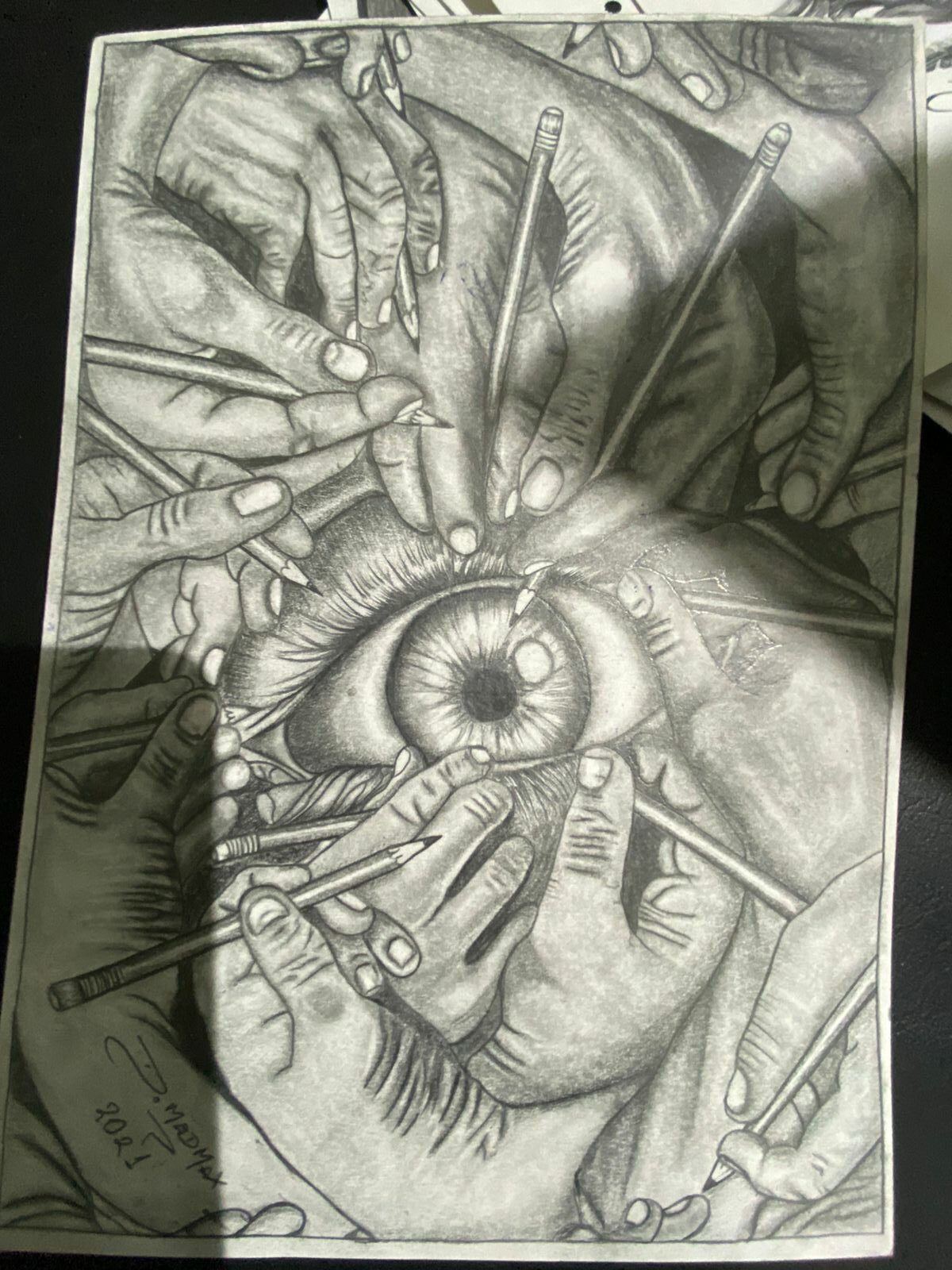 “Encontrei a minha paz desenhando e tatuando, é como se eu entrasse em outro mundo. Fico horas em um desenho e me perco no tempo, já cheguei a ficar quase 18 horas com o lápis e o papel. É como se eu entrasse em um túnel onde não escuto nada, apenas minha playlist do Shawn, me abstenho do mundo real e entro nos desenhos. É uma coisa incrível, nunca pensei que isso pudesse acontecer comigo, porque sempre fui um casa muito enérgico, mas quando pego o lápis ou o equipamento de tatuagem, parece que meu batimento diminui e a calmaria toma conta. É o meu momento”, confessou.