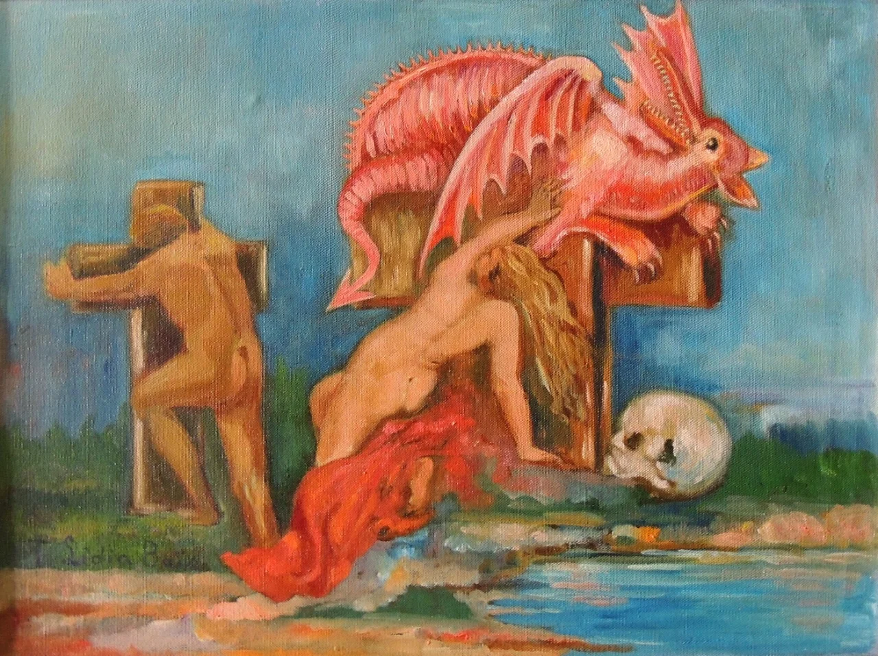 Obras da artista sul-mato-grossense que será exposta: Autoretrat0, Alegoria Profética, Micróbio da Fuzarca e Alegoria.