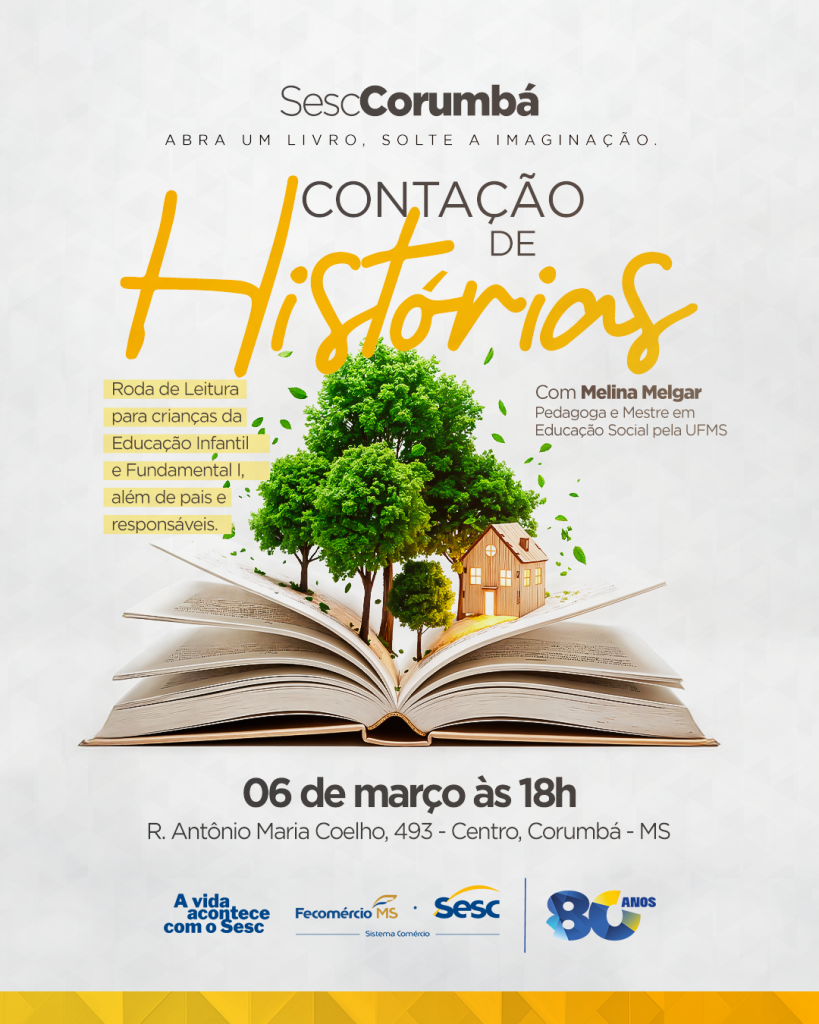 Histórias que despertam a imaginação, aproximam famílias e abrem portas para novos universos fazem parte do projeto “Sexta é Dia de História”, que será realizado ao longo do ano no Sesc Corumbá, unidade do Sesc MS. A proposta reúne crianças da Educação Infantil e do Ensino Fundamental I, além de pais e responsáveis, em encontros de contação de histórias que valorizam o contato com a literatura e o universo da narrativa oral.