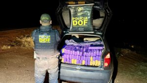 Carro com 739 kg de maconha é abandonado durante perseguição em Ponta Porã