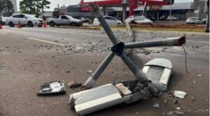Vídeo: Motorista perde o controle e atinge poste na Av. Mato Grosso; via está parcialmente bloqueada