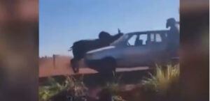 Vídeo: Boi foge de caminhão tombado e persegue moradores em Sidrolândia