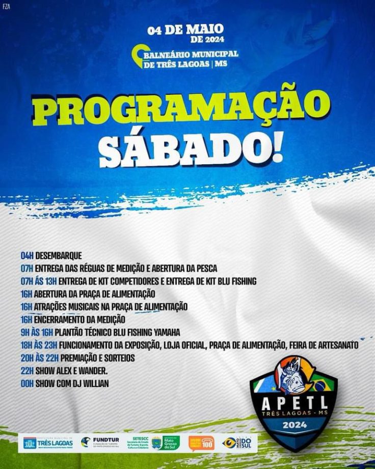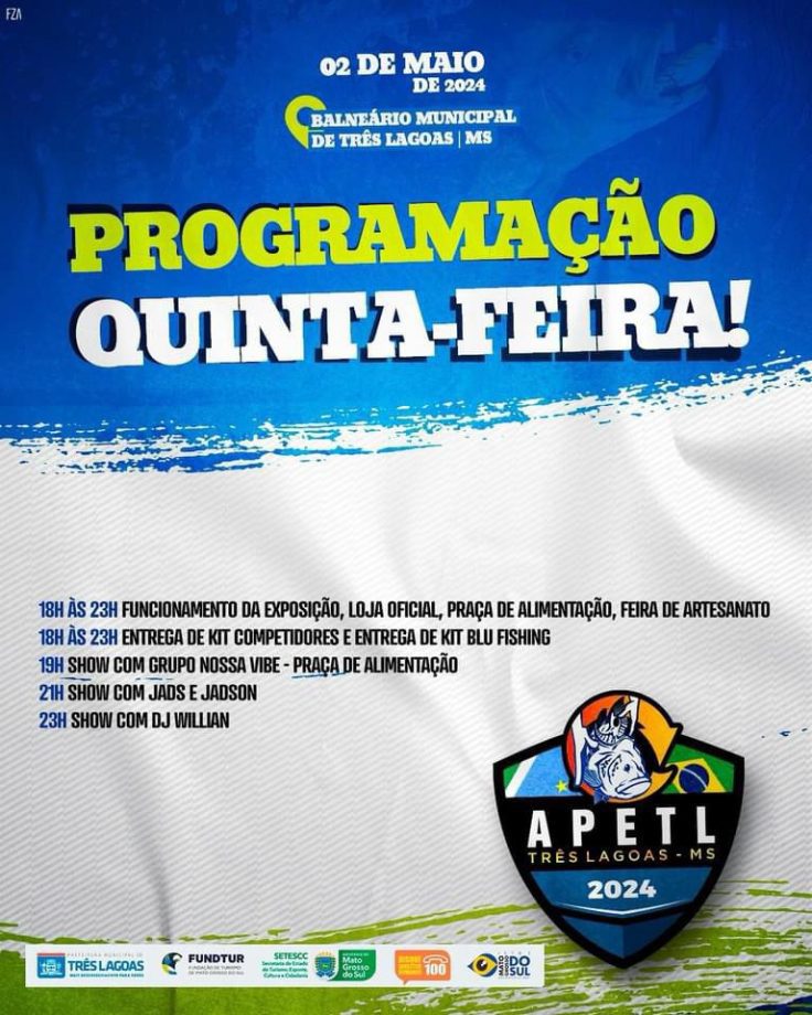 O Torneio é promovido pela Associação de Pesca Esportiva de Três Lagoas (APETL) em parceria com a Prefeitura de Três Lagoas, por meio da Secretaria Municipal de Desenvolvimento Econômico, Ciência e Tecnologia (SEDECT).