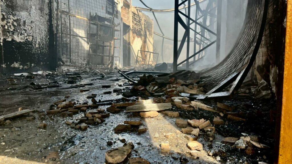 Nas imagens, podem ser observados destroços, fumaça e a fachada da loja destruída. Os moradores acionaram o Corpo de Bomberios para conter um possível incêndio novamente no local.