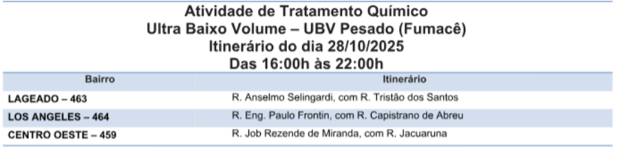 O combate ao mosquito Aedes Aegypti, transmissor de arboviroses como Dengue, Zika e Chikungunya, será reforçado em três bairros de Campo Grande, com o uso do serviço de borrifação ultrabaixo volume (UBV) – conhecido como Fumacê, nesta terça-feira (28).