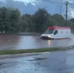 Ambulância Samu ilhada na Avenida Costa e Silva – Foto: reprodução/redes sociais