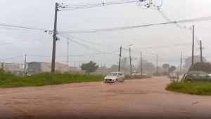 Já no Jardim Los Angeles, ruas voltaram a ficar inundadas durante o temporal. Um dos pontos mais afetados é a esquina das ruas Antônio Prado e José Peixoto. Vídeos enviados por moradores mostram um carro popular se arriscando em uma rua sem asfalto, enfrentando forte enxurrada.