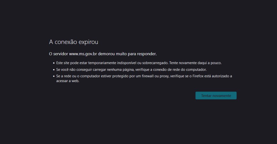 O Portal MS e todos os sites vinculados ao governo de Mato Grosso do Sul, estão fora do ar, na tarde desta quarta-feira(25). A informação foi confirmada pela assessoria de imprensa do órgão.