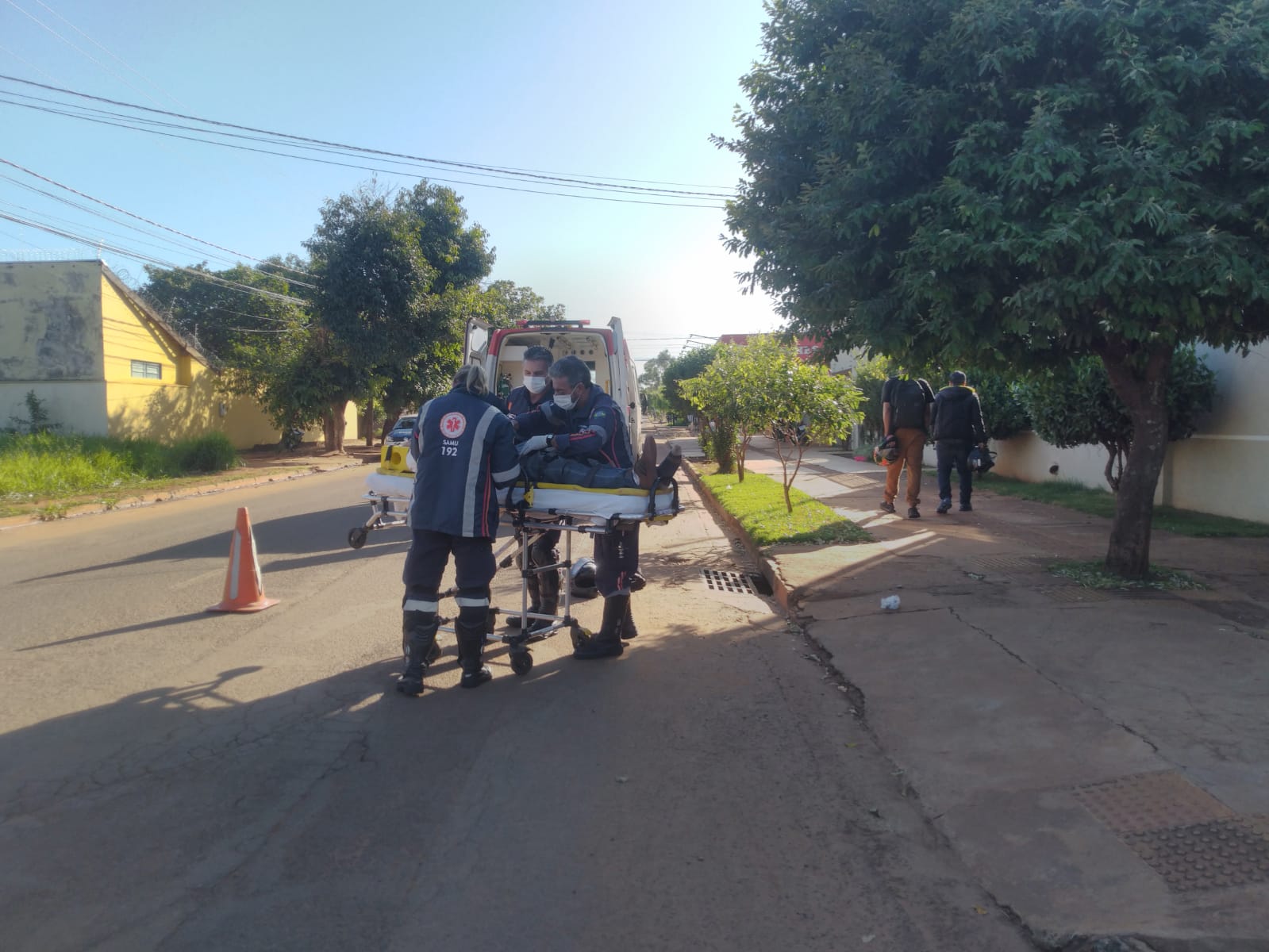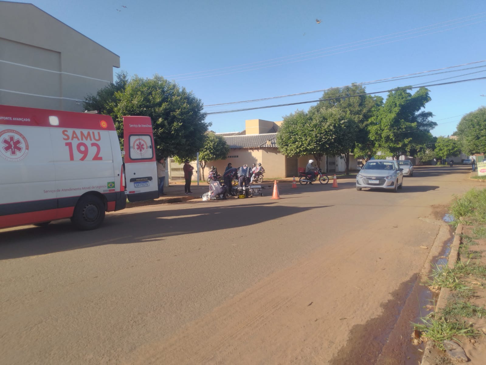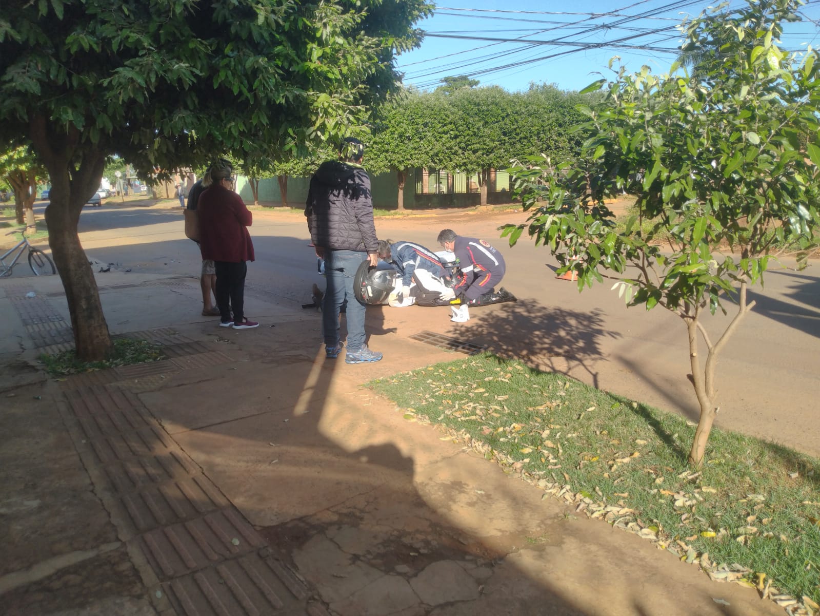 Um acidente entre carro e motocicleta foi registrado na manhã de hoje (05) na rua Armando Capriata, no Conjunto União.