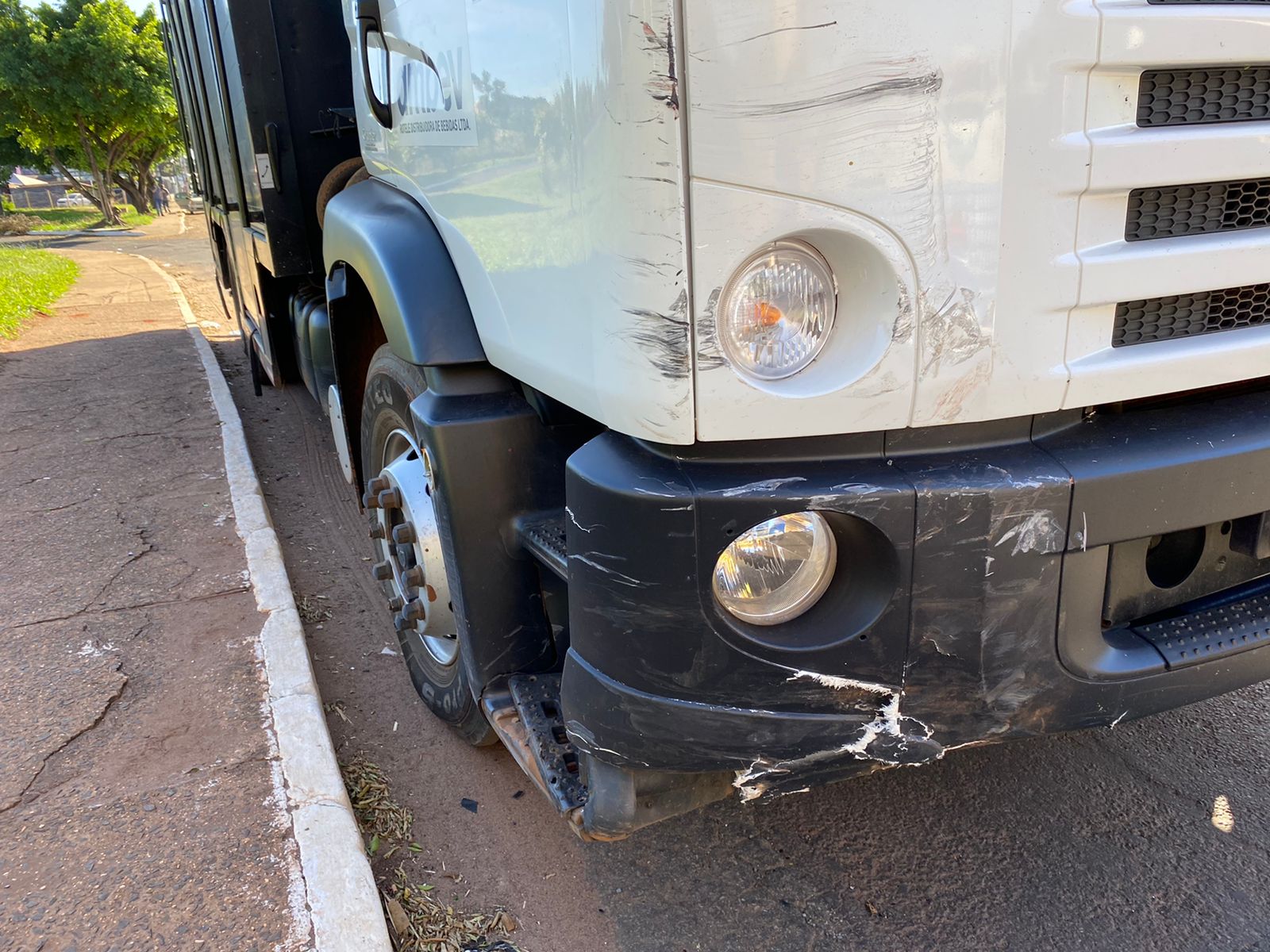 A batida foi entre um veículo de passeio e um caminhão de pequeno porte que transportava bebidas. O caminhão não sofreu grande avarias, apenas amassados no lado direito da região frontal. Já o carro teve grandes danos, possivelmente com perda total.
