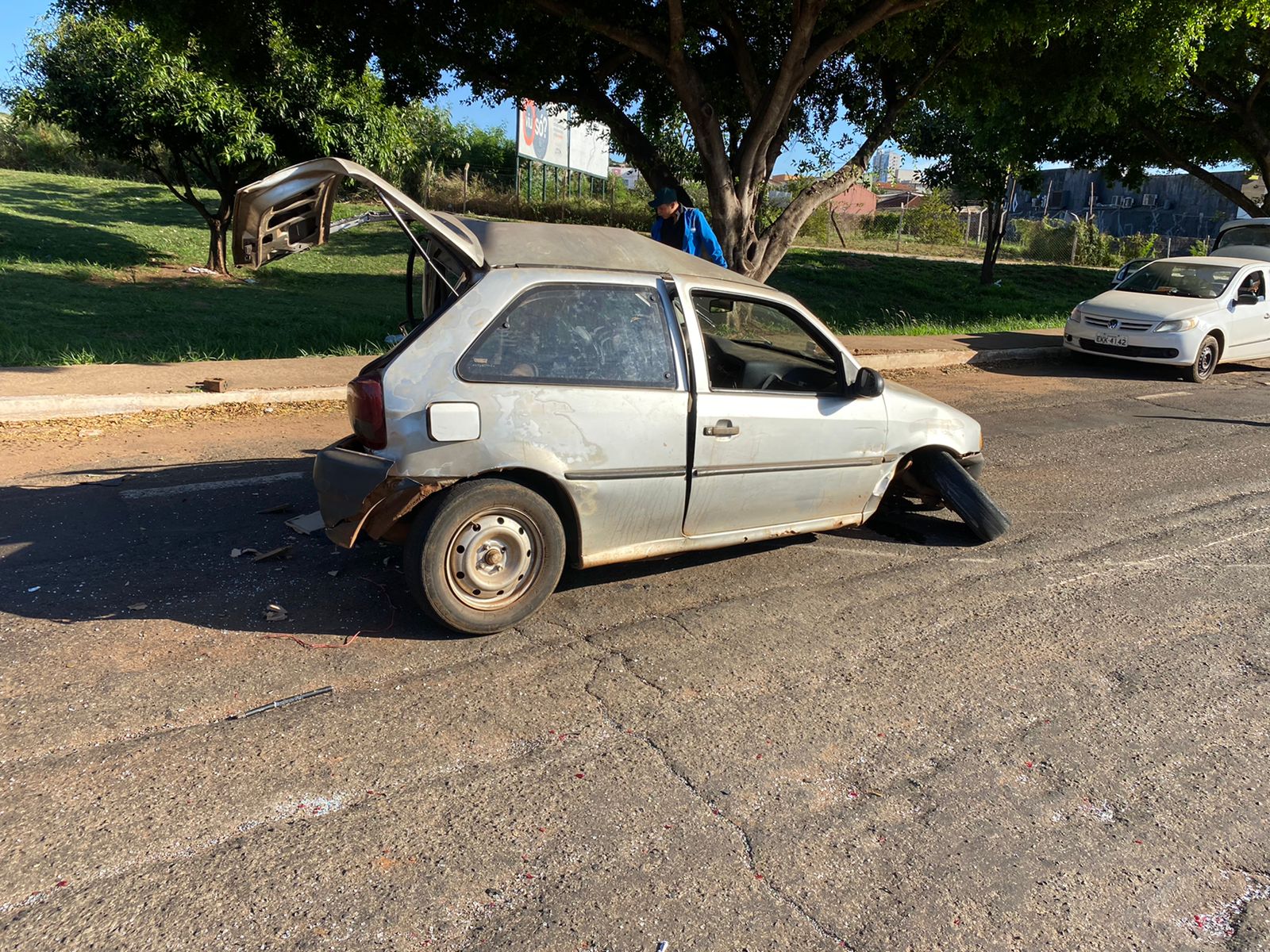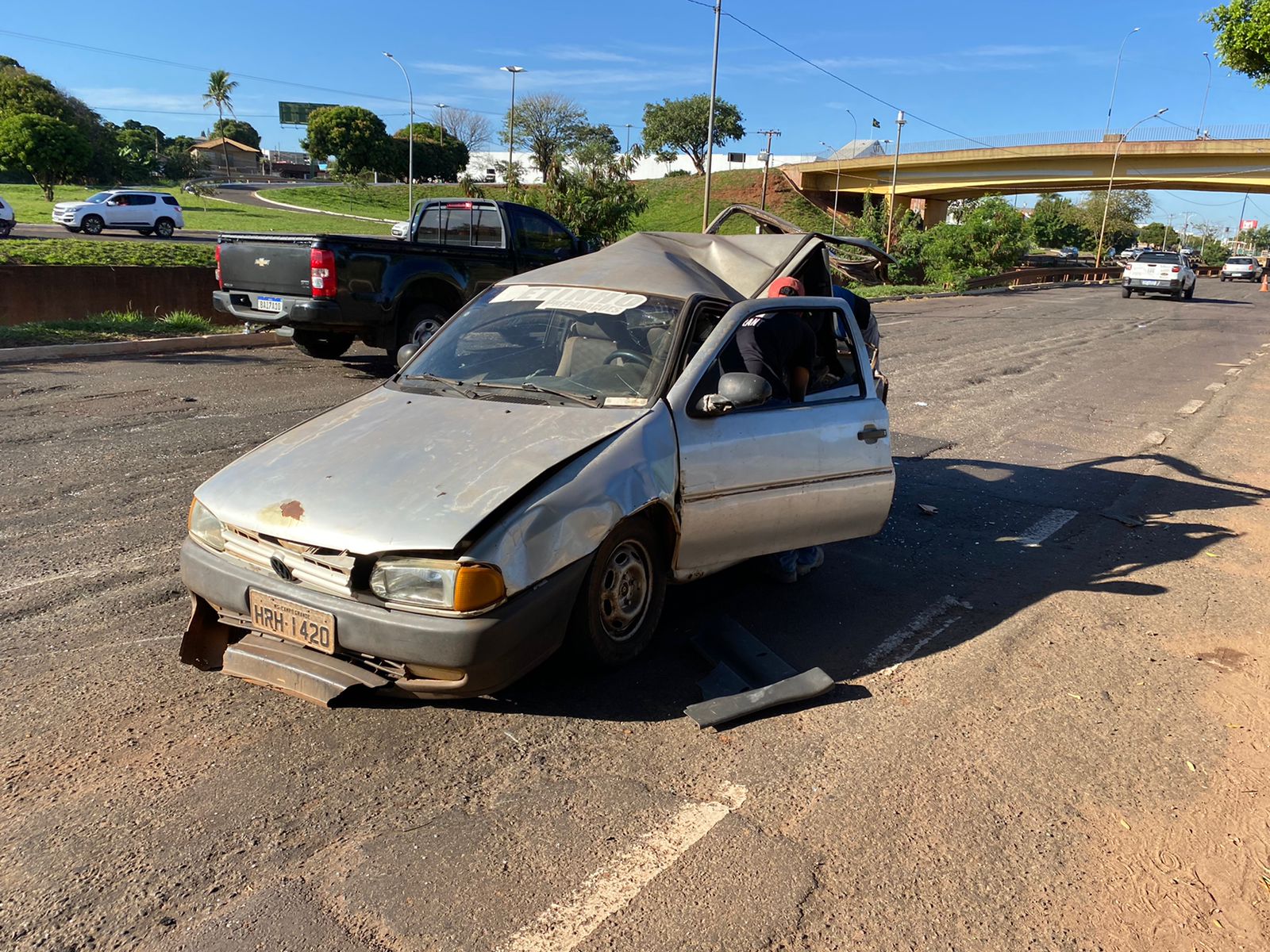 Na manhã desta segunda-feira (04) um carro ficou completamente destruído após uma colisão na avenida Ernesto Geisel próximo ao Pontilhão da avenida Salgado Filho.