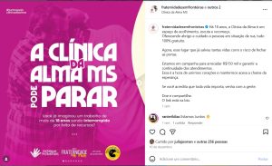 Neste mês, a Fraternidade Sem Fronteiras lançou uma campanha especial para manter o funcionamento da Clínica da Alma, parceira do Projeto Fraternidade na Rua – polo Campo Grande. A iniciativa busca arrecadar recursos para garantir o atendimento gratuito a pessoas em situação de rua e/ou em tratamento por dependência química.