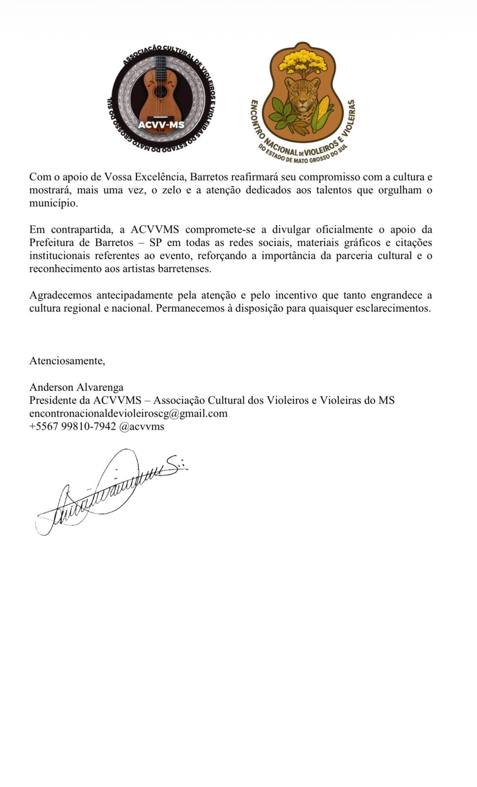 Convite à prefeitura de Barretos, por meio de oficio enviado por Anderson Alvarenga