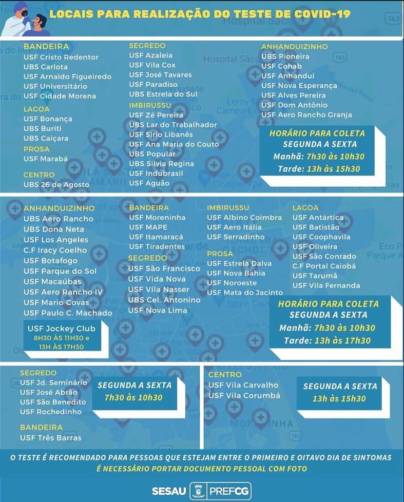 Para realizar o teste é necessário atentar-se ao horário de funcionamento e critérios para realização do exame. Os testes podem ser feitos de segunda a sexta, em algumas unidades o período de atendimento é pela manhã, das 7h30 às 10h, e à tarde, das 13h às 15h30.
