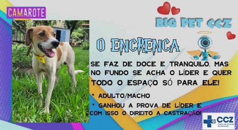 O CCC (Centro de Controle de Zoonoses) entrou no clima do BBB e criou um “reality” dos pets para estimular a adoção de animais em Campo Grande. A proposta é que através do “Big Pet CCZ” moradores se interessem pelo perfil dos animais disponíveis para adoção e levem para casa.