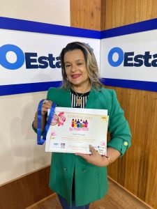 Mônica Riedel com certificado do prêmio mulher nota 10. Foto: Divulgação