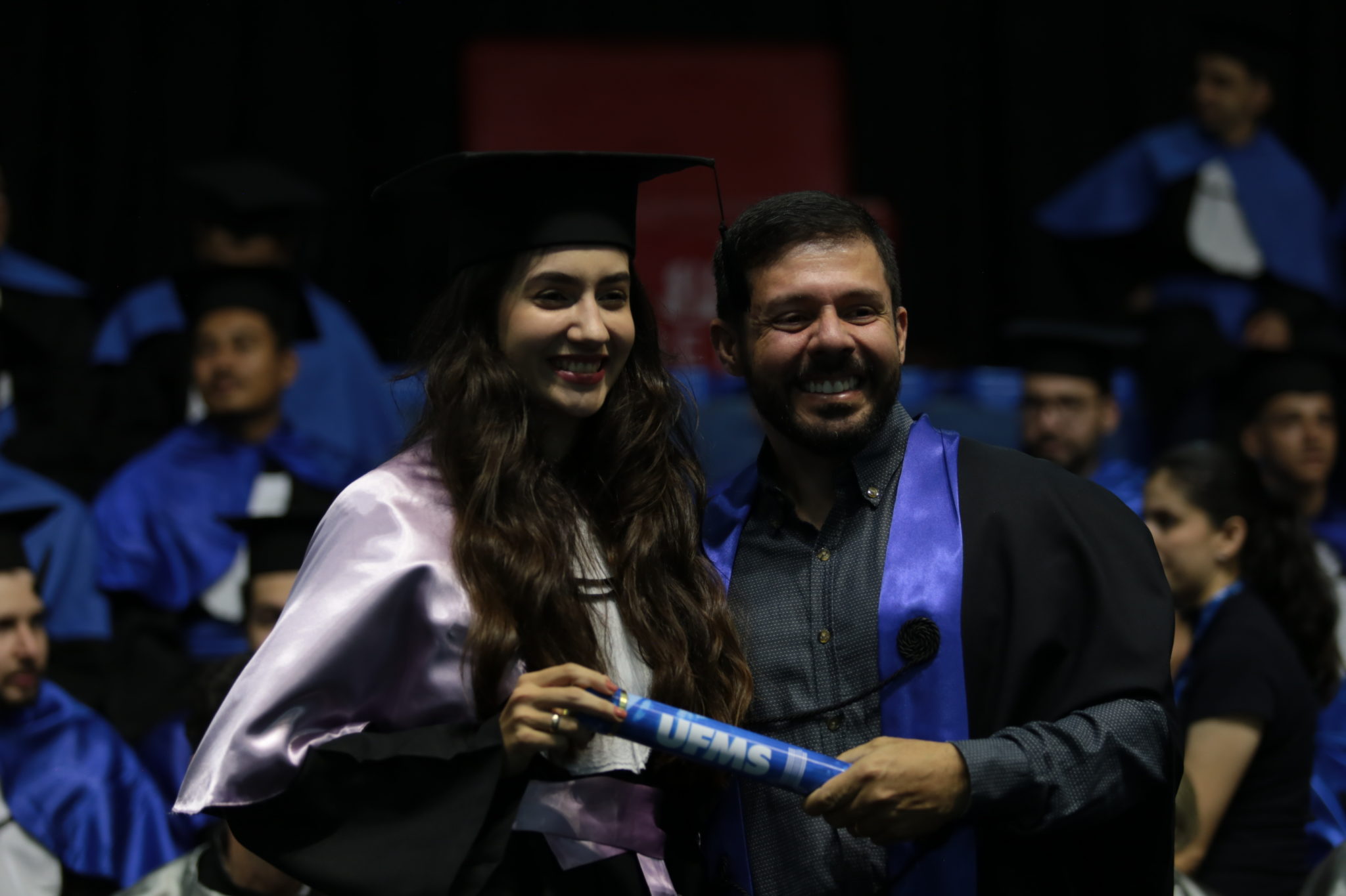 O vice-reitor Albert Schiaveto desejou sucesso na nova caminhada e lembrou sobre o poder de educação na vida de cada um dos novos profissionais. “Vocês acordaram hoje estudantes e vão dormir profissionais, acordaram fazendo parte de uma família de mais de 40 mil estudantes e vão dormir fazendo parte da família de egressos. Temos 45 anos de federalização, mais de 75 mil egressos e vamos dobrar esse número em poucos anos, pois a UFMS cresceu e tem transformado nosso Estado e País. A educação muda as nossas vidas e os mais novos profissionais são os responsáveis por transformar o mundo em que vivemos. A UFMS continua aqui e vocês vão sair para o mercado de trabalho e o sucesso de vocês é o nosso sucesso, a UFMS vai voar com o sucesso de vocês, onde estiverem. Sejam felizes e transformem a realidade!”.