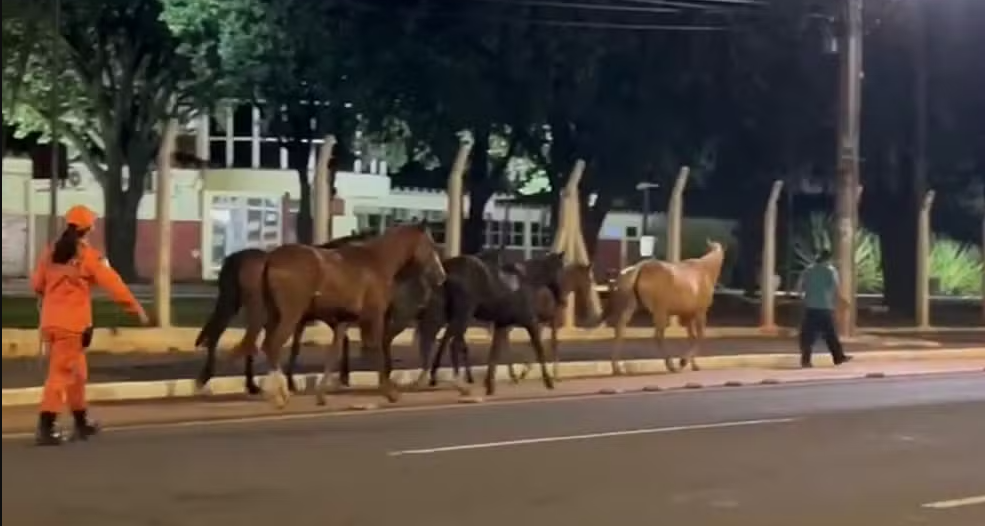 O Corpo de Bombeiros foi chamado na noite desse domingo (21), para atender uma ocorrência com seis cavalos soltos na Avenida Gury Marques, próximo ao Terminal Guaicurus, em Campo Grande. Os animais representavam risco para quem passava pelo local, podendo entrar na frente dos carros ou até mesmo ‘atropelar’ pedestres.