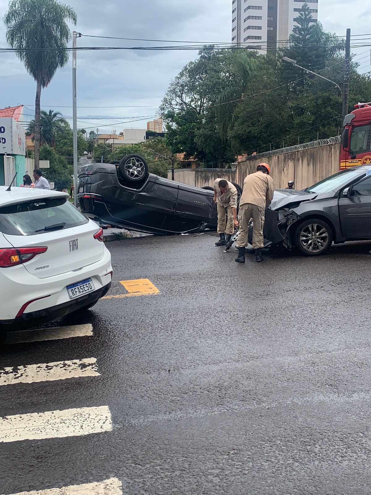 Segundo Douglas Zenos, funcionário de uma loja na esquina do acidente, os veículos envolvidos na batida foram um Volkswagen Gol, branco, um Toyota Corolla, preto, e um Jeep Commander, também da cor preta.