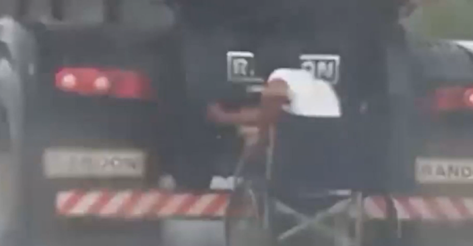 Em plena chuva forte, o homem com deficiência física foi pego segurando na traseira do bitrem, na saída para Três Lagoas, na última terça-feira (1º). De maneira irregular, o homem seguia “numa boa” nem ligando para o mau exemplo que era gravado em vídeo. Assista: