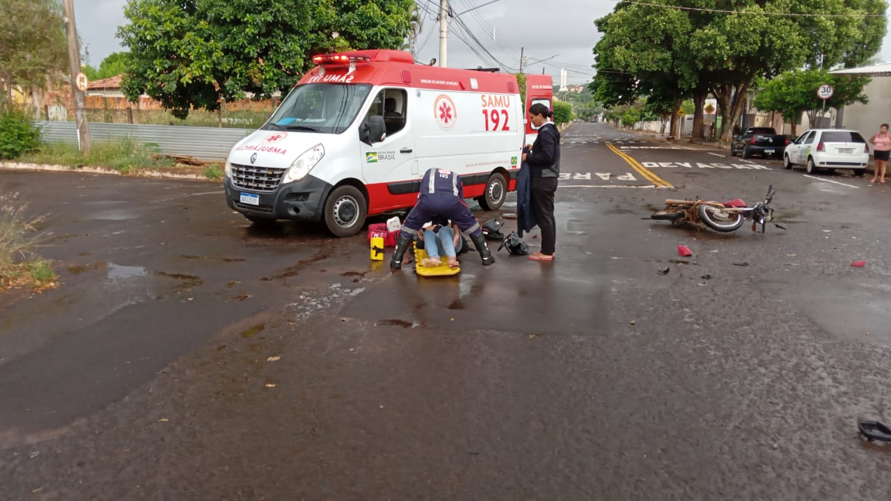 Consciente, a motociclista recebeu atendimento médico do Samu (Serviço de Atendimento Móvel de Urgência) ainda no local e foi encaminhada para a Santa Casa com escoriações e fratura no membro superior. (com Itamar Buzzatta)