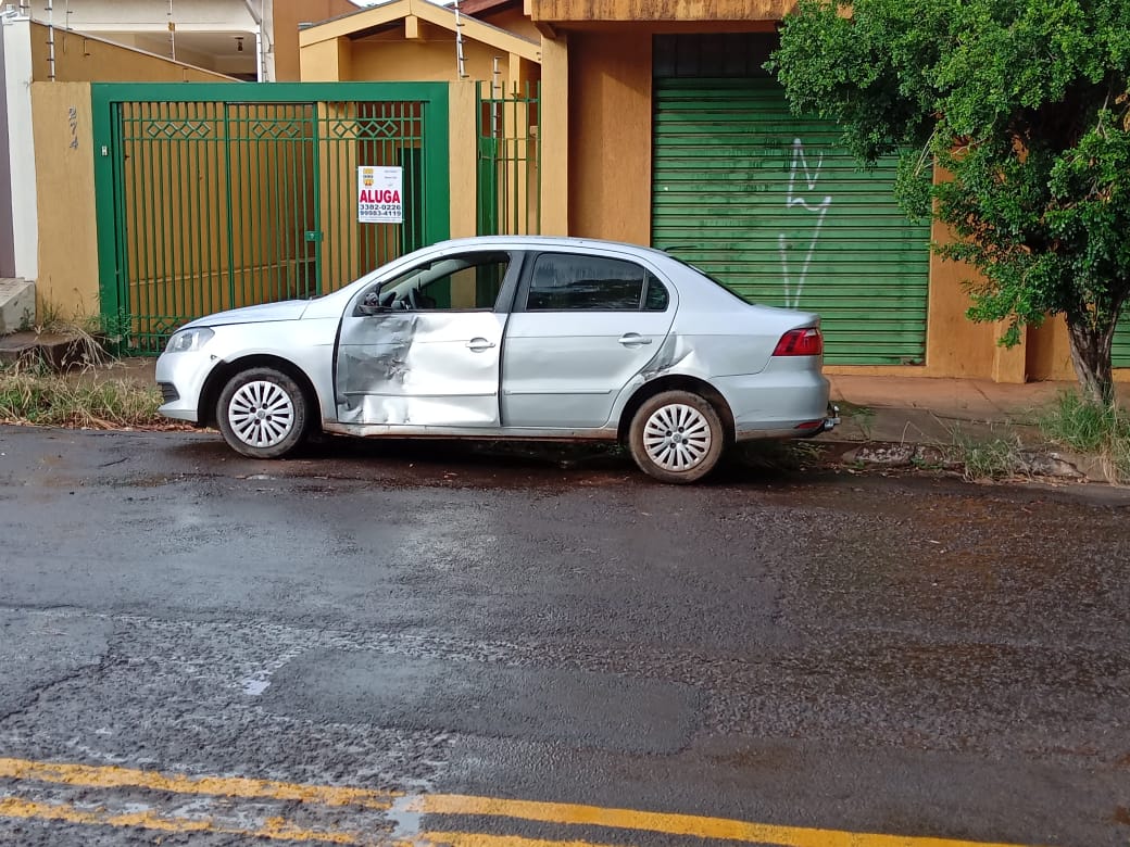 Uma motociclista ficou ferida na manhã desta terça-feira (1°) após colidir com um veículo Voyage no cruzamento das ruas Bernardo Franco Bais com Santo Antônio na Vila Carvalho.