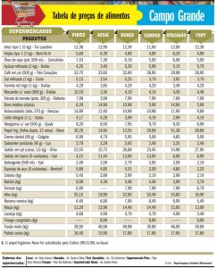A pesquisa realizada pelo jornal, compara os preços de mais de 20 produtos que estão diariamente na mesa dos campo-grandenses. Os valores dos respectivos produtos são organizados em uma tabela para que o consumidor possa fazer a comparação antes de ir as compras.