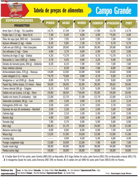 Queda no preço da carne e estabilidade dos hortifrutis aliviam custo da cesta básica em Campo Grande