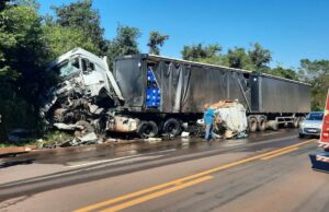 Caminhões se chocam de frente e trânsito fica lento na BR-262