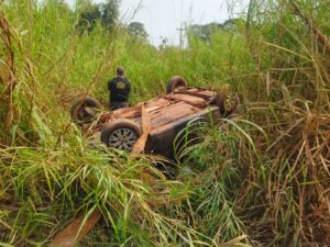 Motorista capota carregado com produtos contrabandeados durante perseguição