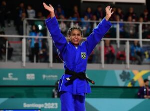 No judô, Alexia Vitória Nascimento, 23 anos, combina tradição familiar e dedicação ao esporte. Filha de Alessandro Nascimento, referência sul-mato-grossense na modalidade, começou cedo no tatame sob orientação do pai, acumulando experiência e medalhas desde as categorias de base, como o título de Campeã brasileira e o ouro nos Jogos Pan-Americanos de Santiago, em 2023.