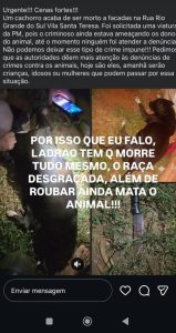 A brutalidade do crime gerou revolta e comoção. Para defensores da causa animal, a resposta das autoridades precisa ser firme. Violência não é reação é crime. E crime exige justiça.
