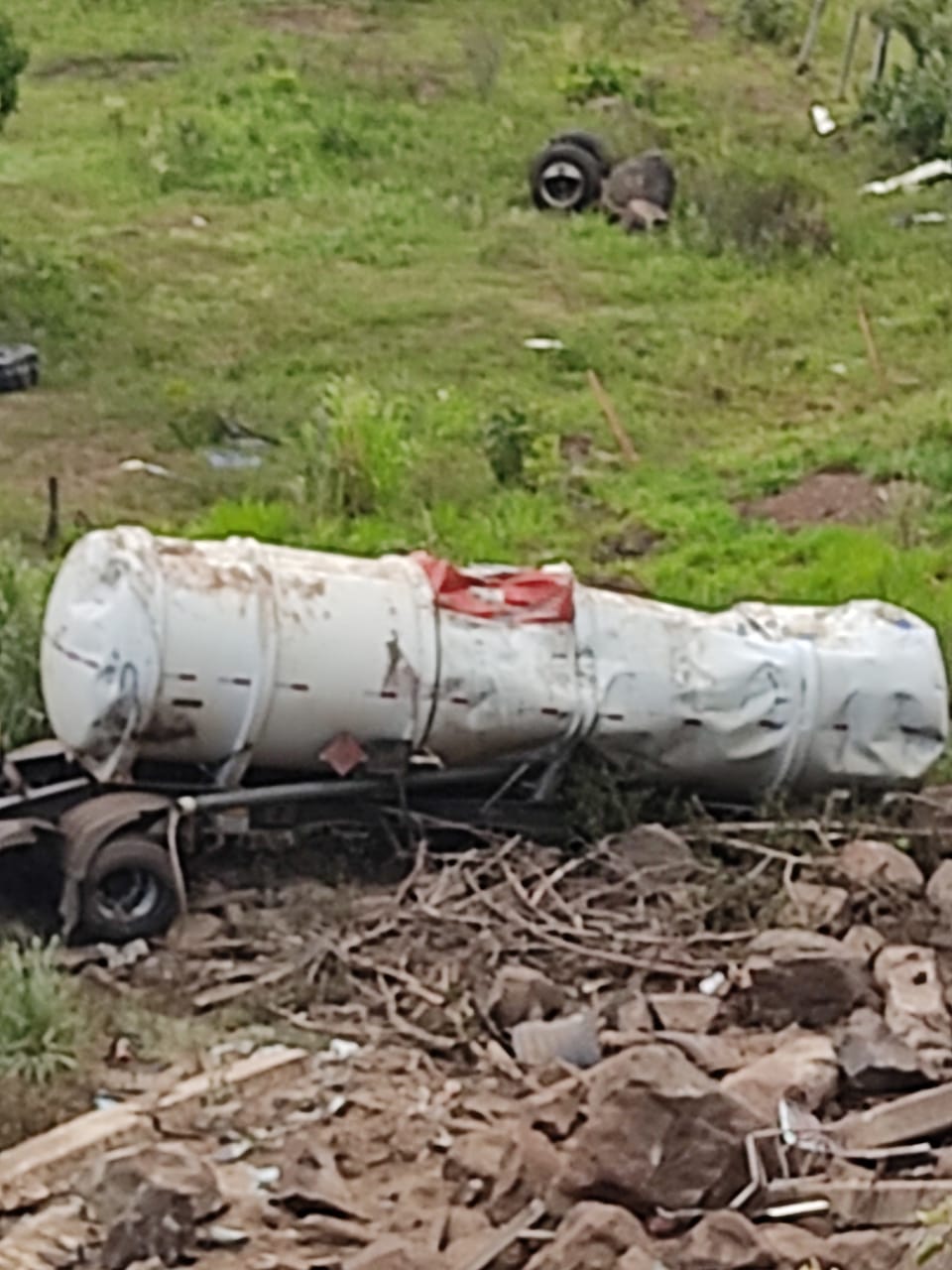 Uma carreta bitrem carregada com etanol caiu na serra de Maracaju após sair da da BR-060, em Nioaque. Antes de cair, o condutor do bitrem tentou virar a carreta, que estaria sem freios, e acabou atingindo um veículo de passeio. Apesar susto, os dois condutores passam bem. O acidente aconteceu na manhã deste domingo (19).