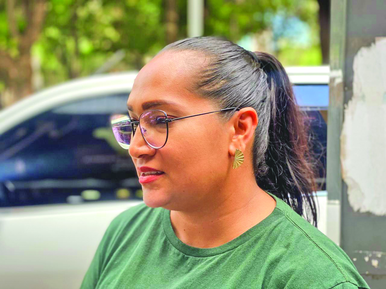 Vendedora na Rua 14 de Julho, Francione Miranda, 38 anos, mãe solo de dois filhos, relata que a falta de acesso à educação infantil impacta diretamente sua permanência no mercado de trabalho.
