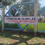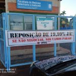 Espalhadas por diversos pontos das universidades, as faixas divulgam a seguinte mensagem: “Reposição salarial de 19,99% já! Se não negociar, vamos parar!”.