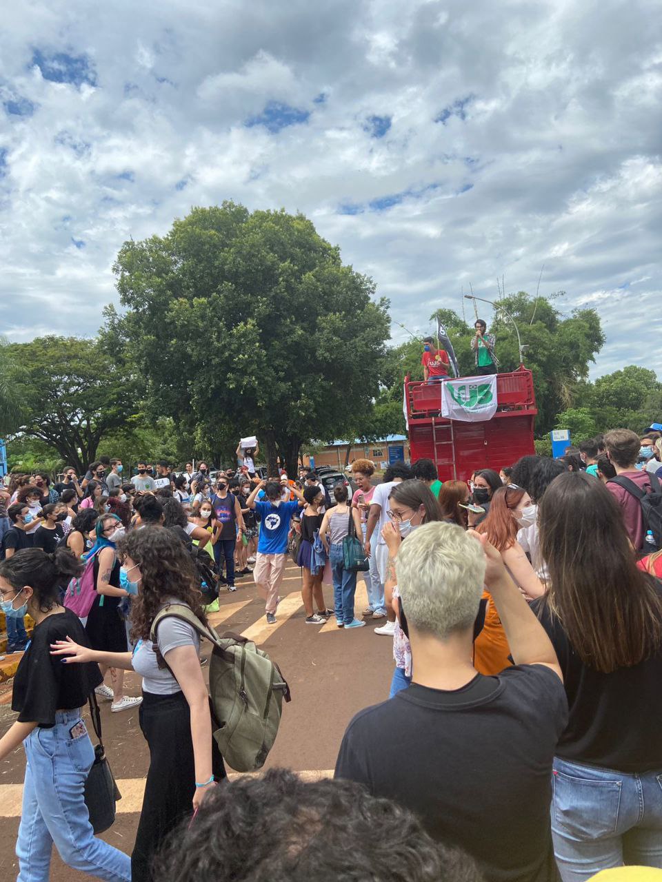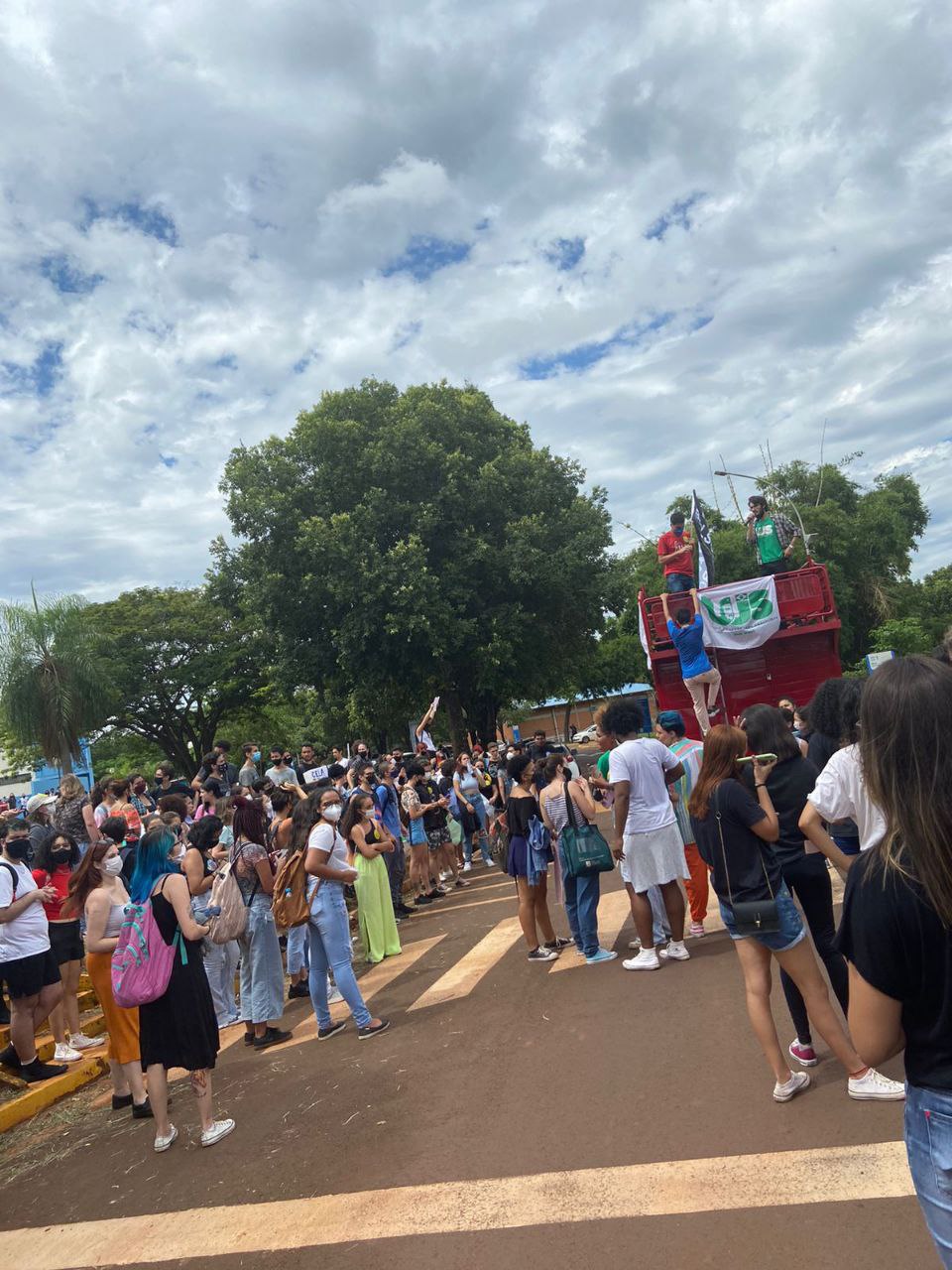 Estudantes da UFMS (Universidade Federal do Mato Grosso do Sul) organizaram manifestação na manhã de hoje (30) em frente a reitoria da cidade universitária contra o aumento das tarifas do RU (Restaurante Universitário).