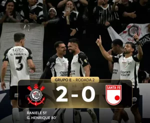 Corinthians decide na bola parada, vence Santa Fe e lidera grupo na Libertadores