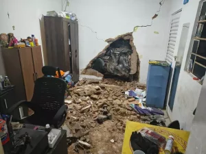 Carro invade casa após bater em poste e motorista foge no Bairro Lar do Trabalhador