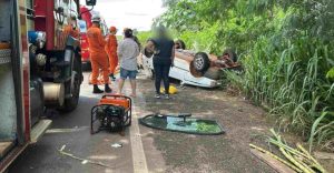 Criança fica presa às ferragens e idosa sofre parada cardíaca após capotamento nas proximidades da Cachoeira do Céuzinho