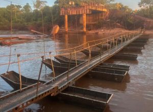 Exército instala passadeira flutuante sobre o Rio do Peixe para facilitar travessia de moradores em Rio Negro
