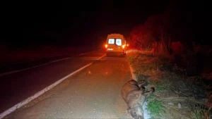 Ambulância atropela anta e passageira fica ferida em rodovia de Nova Andradina