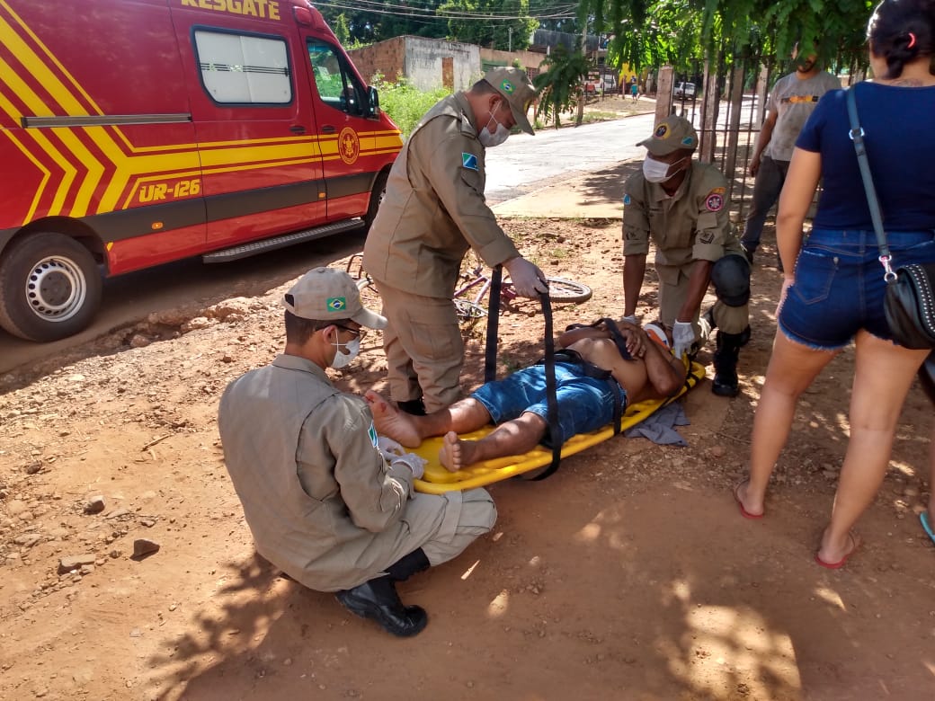 A vítima já foi socorrida por uma ambulância do SAMU saiu do local com ferimentos no corpo, consciente e orientado, segundo informações ele foi encaminhado para o UPA leblon a bicicleta ficou distorcida com a batida e parentes da vítima já foram buscar, o motorista do carro ficou a todo momento no local.