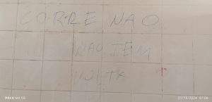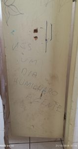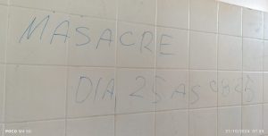 Na última segunda-feira (21), a escola amanheceu com pichações nas paredes de um dos banheiros com mensagens de incitação à violência.