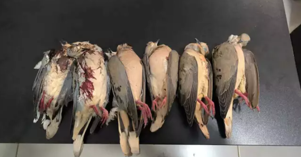 Carabina de pressão de origem estrangeira e várias pombas mortas foram encontradas em um pasto do bairro Portal dos Ipês, em Deodápolis, a 265 quilômetros de Campo Grande, nesse sábado (20).