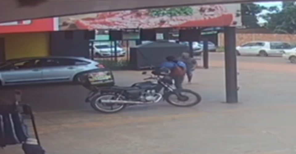 Imagens de câmera de segurança de uma das lojas da galeria onde uma mulher, ainda não identificada, foi esfaqueada pelo ex-marido, flagrou o momento da agressão. Caso foi registrado no início da tarde desta terça-feira (28), em uma galeria de comércio na Rua Francisco Pereira Coutinho, no Bairro Nova Lima, região norte de Campo Grande.